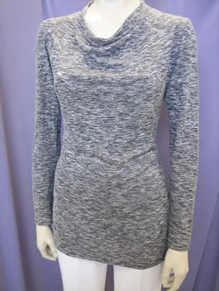 A close-fitting back neckline and collar hug the body securely to offer a stable fit for this raised cowl neck top. This top will not ride back off the shoulders. The raised cowl offers a modest fit as it drapes beautifully at the center area of the front neckline and upper bust without any extra and unflattering horizontal folds radiating from the armscye.